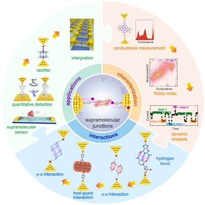 单分子尺度的超分子电子学是融合分子电子学和超分子化学的重要前沿,为制造超分子电子器件,推动电子器件小型化,及在分子水平理解分子间电子输运过程提供了一种新的研究途径,其主要挑战在于如何制备并操纵由分子间相互作用力构筑的单个超分子电子组件。经过近半个世纪的发展,单分子电子学不仅为研究单分子尺度新奇的物理化学过程提供了可能,也为探索分子间电荷传输、分子组装甚至超分子组装动力学提供了一个独特的平台。该综述系统地介绍了分子电子学领域中超分子电子学方向的实验研究进展及应用,并重点对几种典型的非共价相互作用,包括π-π相互作用、氢键、主客体相互作用和σ-σ相互作用的电子输运性能、调控及应用进行了系统总结和探讨。论文最后对发展多维超分子电子器件表征技术和挖掘超分子体系新量子现象的发展趋势及面临的挑战进行了展望。