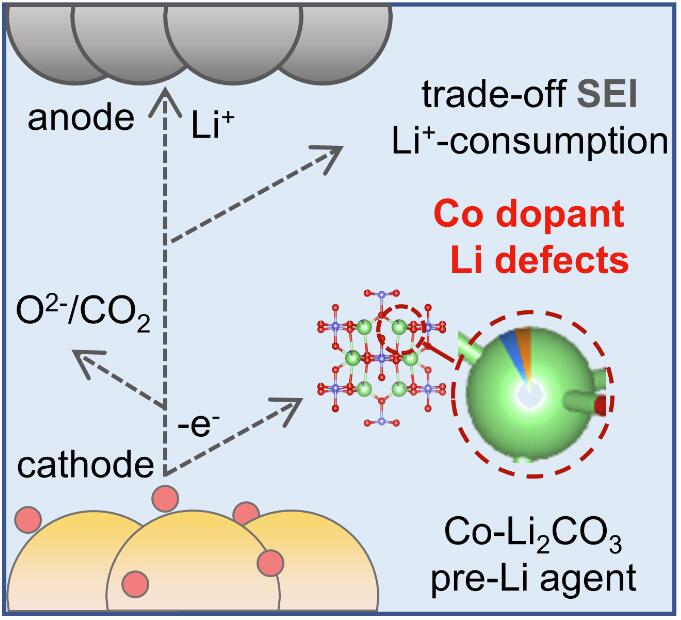 晶格工程激活Li2CO3基正极补锂剂分解实现负极锂补偿示意图