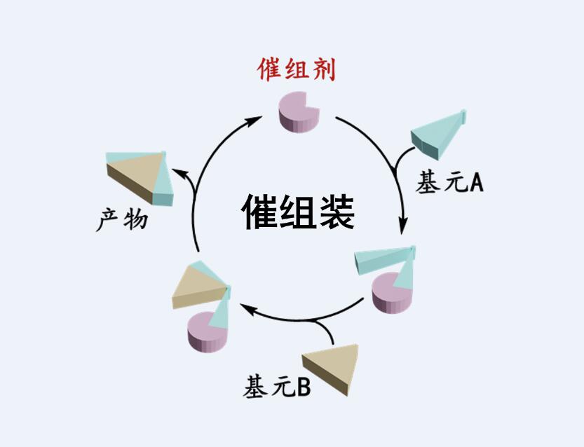田中群教授2012年首次在国际上提出了可控组装新方法——催组装。催组装(catassembly)是通过加入一类称为“催组剂”(catassembler)的物质,加速组装过程,或者协助组装基元选择合适的组装路径而获得目标组装体;催组剂在组装前后不发生变化,也不存在于最后的组装体中。究其功能而言,催组剂之于分子组装,正如催化剂之于化学反应,且越复杂的组装越需要催组装的帮助。