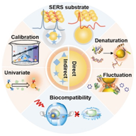 SERS 利用在可见光-近红外波段具有很强表面等离激元共振效应的Ag、Au等纳米结构,来显著增强吸附在纳米结构表面上的分子的拉曼信号,以超高检测灵敏度(甚至高达单分子)获得样品自身的指纹特征,是一种极具潜力的生物分析检测技术。但是,从其发现至今的四十多年,SERS技术还未能在生物医学领域得到广泛应用,其中关键原因是因为SERS生物检测涉及光-表面等离激元纳米材料-生物体系三者之间异常复杂的相互作用,导致难以获得重现可靠的光谱数据,而SERS检测的可靠性也成为SERS生物检测的瓶颈问题。基于该背景,并针对一般化学和生物背景的读者,该综述首先介绍SERS基本原理,并以其指导设计高灵敏的SERS检测方案,以及生物分子和细胞与纳米材料的复杂相互作用,并结合SERS基本原理指导设计可靠的SERS生物检测探针,进而从生物分子、病原体到活细胞不同层次,介绍了直接和间接SERS检测方法在细胞和生物检测中的现状,并从实验设计、测量条件和数据分析等不同角度分析了各种可能干扰SERS分析检测可靠性的潜在因素。该综述展望了SERS生物检测中的关键挑战,包括重现性、灵敏度和时空间分辨率等。该工作总结了任斌教授课题组几代博士,硕士和博士后的在SERS生物分析检测中积累的宝贵经验,并将这些经验总结成一张速查表,为广大研究者提供实验帮助。