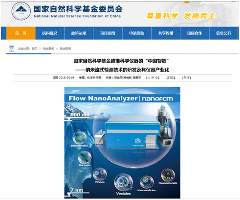 近日,国家自然科学基金委网站“基金要闻”以“国家自然科学基金助推科学仪器的‘中国智造’——纳米流式检测技术的研发及其仪器产业化”为题报道了颜晓梅教授课题组的技术研发及其产业化成果。