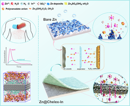 近日,我院赵金保教授/杨阳副教授团队在锌金属电池负极界面调控的研究中取得新进展,相关成果以“Stabilizing Zn/electrolyte Interphasial Chemistry by a Sustained Release Drug Inspired Indium-Chelated Resin Protective Layer for High-Areal-Capacity Zn//V2O5 Batteries”为题发表在Angew. Chem. Int. Ed.上,并评选为“Hot Paper”(DOI: 10.1002/anie.202405593)。