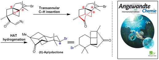 我院张延东课题组一直致力于生理活性天然产物全合成,在该领域取得了重要进展,以目前国际上最短的路线(12步转化)实现了海洋含卤天然产物Aplydactone的无保护基全合成。相关成果以“Total Synthesis of Aplydactone via a Conformationally ControlledC–H Functionalization”为题发表在Angew. Chem. Int. Ed., DOI:10.1002/anie.201703803,并被邀请作为杂志内封面(Inside Cover)。