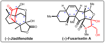此外,张延东课题组近期还完成了多个复杂天然产物的全合成:以13步反应实现了具有神经营养活性、有望发展为抗老年痴呆药物的倍半萜Jiadifenolide的不对称全合成(Org. Lett.2015, 17, 5480−5483.),并在此过程中发现了全新的 [4+1]环化构建四氢呋喃环的反应,该工作成为 “Most Read Articles” in 12 months;以8步反应实现了具有抗癌转移活性的氨基酸杂合天然产物Fusarisetin A的全合成(Org. Lett.2016, 18, 624−627.),并开展了类似物的合成,为该分子的生物医学研究做出初步探索。