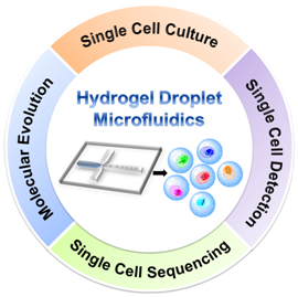 传统生物学分析方法通过分析大量分子和细胞获得群体平均数据,无法揭示不同分子、不同细胞之间存在的差异。单分子/单细胞分析技术希望比较单个个体间的差异,为阐述分子相互作用、分子机制、信号转导过程提供丰富的信息。单分子/单细胞分析对表征技术要求分析体积较小、灵敏度高, 同时又需要高通量以满足为揭示群体的异质性而需要大量统计数据的要求。液滴微流控具有液滴体积小、交叉污染少、反应快速、通量高等特点,是操控与研究单分子/单细胞的理想工具。为解决液滴的微观操控、储存与常规实验室宏观操作、检测的兼容性问题,杨朝勇课题组利用琼脂糖水凝胶的热相变性质,创新性地建立了琼脂糖液滴微流控单拷贝PCR方法,为DNA测序、单细胞分析提供了一种简单、快速、高通量的单分子放大方法。在此基础上,该课题组进一步发展了单分子/单细胞琼脂糖液滴RT-PCR方法,在液滴中实现了细胞分离、细胞裂解、反转录、链酶聚合反应、染色等一系列单细胞反转录放大关键步骤,可在几万到几十万个液滴内进行高度平行的单分子/单细胞RNA扩增分析,为单细胞基因表达分析提供了一种快速、低耗、高通量的方法,并进一步实现了大量正常细胞中痕量致病细胞的高灵敏检测。基于高通量液滴单分子扩增表征技术,该课题组还发展了核酸适体高效筛选鉴定新方法,为快速、经济地获得亲合力核酸适体提供了捷径。这一系列成果引起了国内外学术界的广泛关注。
