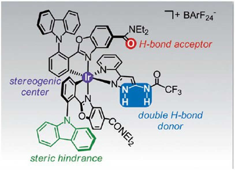 碳类亲核试剂对β,β-二取代硝基烷烃的不对称共轭加成因其能够构筑全碳键手性季碳,在有机合成中上具有重要意义。然而,到目前为止,仅有非常少量的报道和方法能够实现其高立体选择性的不对称催化。本工作设计了一类配位刚性、构型稳定的唯金属手性八面体铱配合物,应用于该类反应中,在低的催化剂用量下取得了高转换率和立体选择性(1% cat. loading, 96% yield, 97% ee),并且在底物的选择上具有着良好的普适性。此外,我们根据分子模拟计算,解释了其催化反应机理。