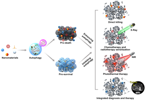我院高锦豪教授与华南理工大学医学院及生命科学研究院温龙平教授团队受邀在Accounts of Chemical Research上合作发表题为”Pro-Death or Pro-Survival: Contrasting Paradigms on Nanomaterial-Induced Autophagy and Exploitations for Cancer Therapy”的综述论文( DOI: 10.1021/acs.accounts.9b00397)。该论文系统地介绍了近年来团队合作在纳米材料诱导细胞自噬调控细胞命运的效应、机制及肿瘤诊疗应用的研究进展。