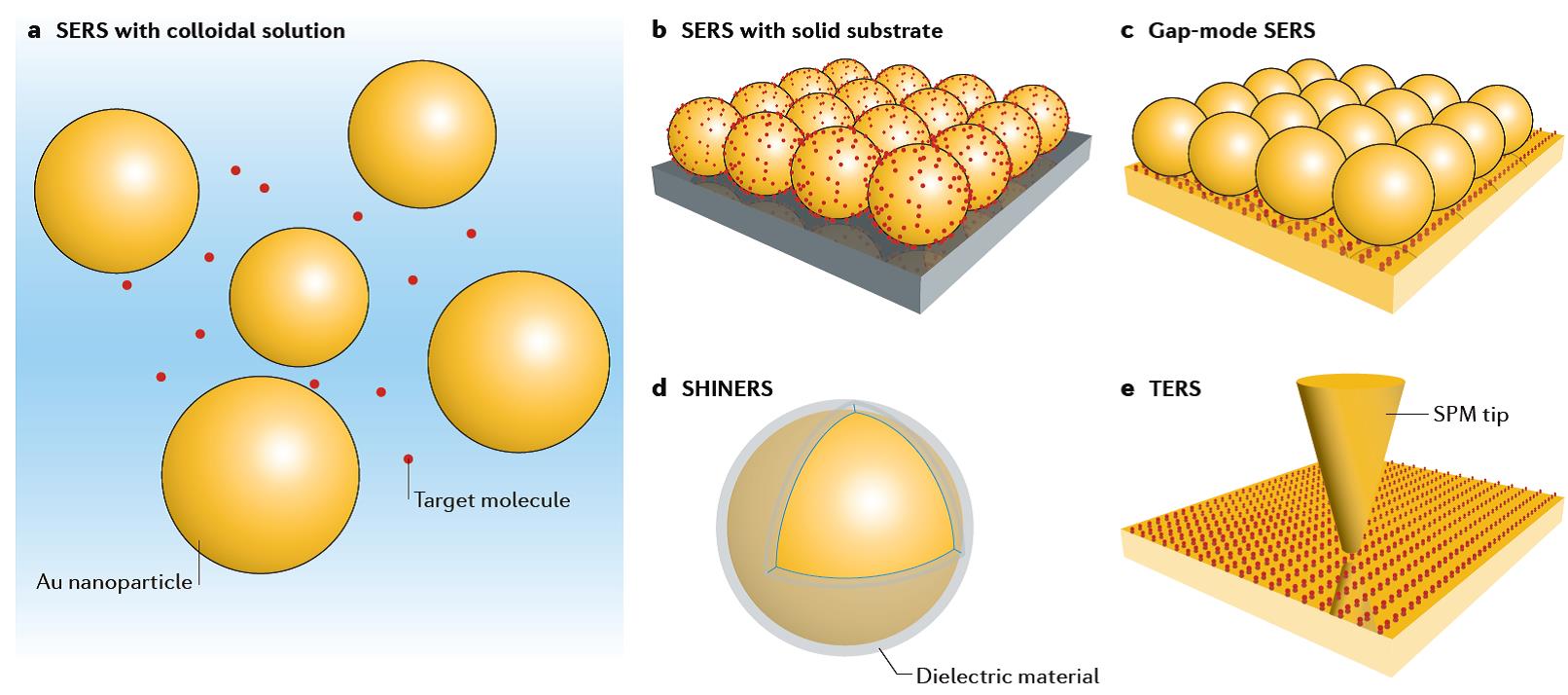 同一周,该课题组应Chemical Science邀请撰写的“Surface-enhanced Raman spectroscopy: benefits, trade-offs and future developments”(Chemical Science, 2020, DOI: 10.1039/D0SC00809E)mini review也正式上线。该综述在介绍SERS基本原理的基础上,从分子与纳米材料作用的本质入手,分析如何提高SERS实验的重现性以及如何规范的计算SERS增强因子。特别为读者给出未来SERS应用于实际样品的定量分析所必须遵循的实验设计思路和原则。这两篇综述从不同角度分别展望了PERS(SERS)技术的未来发展方向,并指出亟待解决的问题。