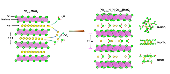 钠离子电池由于钠的地球储量丰富、成本低廉及其独有的电池安全特性等优势,是未来风、光电等规模化储能系统的重要候选者,因而对电池的循环寿命、功率特性及其材料的制造性能提出了很高的要求。尽管层状钠离子过渡金属氧化物的体积能量密度较高,但其在充放电过程中材料结构相变可逆性差、电极/电解液界面不稳定以及空气中暴露易发生化学变质等问题严重阻碍了其商业化的应用。针对该类材料空气稳定差的问题,杨勇教授课题组在该文中选择了两种典型的金属层状氧化物(P2-Na0.67MnO2和P2-Na0.67Ni0.33Mn0.67O2),通过严格设计及控制实验环境及其反应条件,借助于多种先进的谱学以及高分辨电镜表征手段,结合DFT计算,对P2-型层状金属氧化物在潮湿气氛中发生的化学和材料结构变化过程进行了深入细致的解析,首次提出并证明可以用其中过渡金属离子在首次充电时的氧化电位作为层状钠离子氧化物空气稳定性的判断原则。