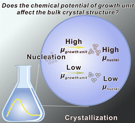 前期研究仅涉及特定体相结构的纳米晶的生长,即mc为常数。在本研究中,谢兆雄教授课题组提出:结晶成核阶段的产物可能出现的不同体相结构纳米晶,这意味着存在不同的mc;因此,可以推断生长基元的化学势(ml)除了可以调节产物的表面结构(表面能)外,也可以调节产物的体相结构,尤其是在成核阶段。为此,该课题组通过简单改变反应容器材质(憎水的聚四氟乙烯和亲水的玻璃)来调控晶体成核临界过饱和度,成功实现对Pt和Pd纳米晶产物从五重孪晶二十面体到单晶立方体或八面体的转变。研究结果表明,高化学势的生长基元在成核阶段可以产生高化学势的晶核。该研究厘清了晶体生长过程中决定亚稳态纳米晶结构的关键因素,不仅完善相关晶体生长理论,还可以指导合成具有不同热力学亚稳态的纳米晶。