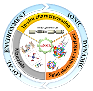 杨勇教授课题组多年来致力于发展先进的固体核磁技术,用于电化学能源材料的研究并取得了系列重大进展。近期课题组结合ssNMR和深电势分子动力学模拟(DPMD),揭示了顺磁性电池材料中的快速碱金属离子动力学(Angew. Chem. Int. Ed. 2021. in Press),利用国际合作研发的电化学-原位固体核磁技术装置,追踪界面金属的枝晶生长过程(Nat. Nanotechnol. 2020, 15, 883-890),研究负极材料的充放电机理( J. Mater. Chem. A, 2019, 7,19793)等。此外,利用高分辨魔角旋转固体核磁技术对锂离子电池正极材料(Nat. Energy 2017, 2, 17074; Journal of Power Sources 412 (2019) 336–343)、钠离子电池正极材料(Nat. Commun. 2020, 11, 1-12; Angew.Chem. Int. Ed. 2018, 57,11918 –11923;Angew. Chem. Int. Ed. 2019, 58, 18086-18095)以及固态电池与固体电解质材料(Adv. Energy Mater. 2021, 11, 2003583; Materials Today 2020,36,139-163; Nano Energy 67 (2020) 104252;Chem. Mater. 2020, 32, 4998−5008)的充放电反应机理,进行了深入系统的研究。