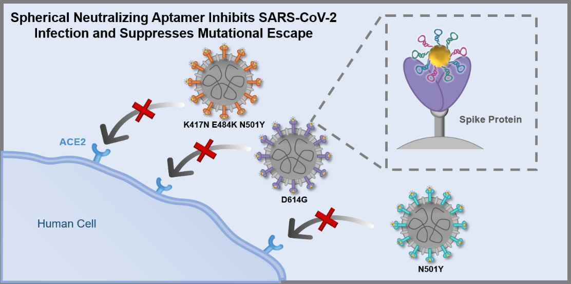近日,我院杨朝勇教授课题组在新冠中和治疗领域取得新进展,相关成果以" Spherical Neutralizing Aptamer Inhibits SARS-CoV-2 Infection and Suppresses Mutational Escape"为题,发表于《美国化学会志》(J.Am.Chem.Soc. DOI: 10.1021/jacs.1c08226)。