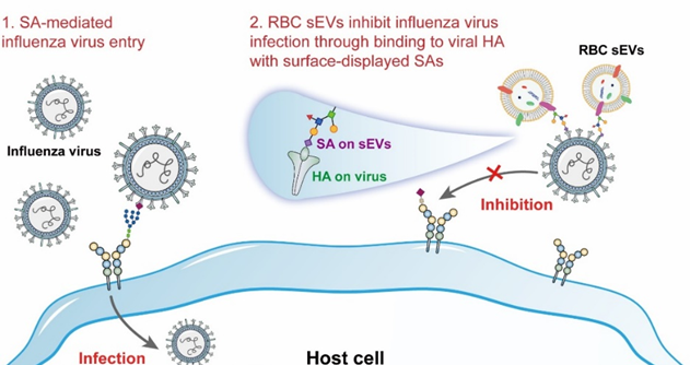 我院颜晓梅教授课题组在细胞外囊泡抑制流感病毒领域取得重要进展,相关成果以 “Red Blood Cell-Derived Small Extracellular Vesicles Inhibit Influenza Virus through Surface-Displayed Sialic Acids”为题于近日在线发表于《德国应用化学》(Angew. Chem. Int. Ed., 2024, e202413946,DOI:10.1002/anie.202413946)。