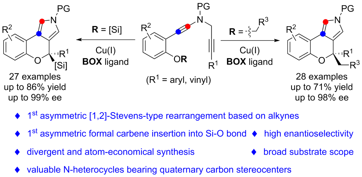 我院叶龙武和吕鑫教授课题组在基于炔酰胺的杂环合成方法学研究方面取得重要进展,相关成果“Copper-Catalyzed Asymmetric Diyne Cyclization via [1,2]-Stevens-Type Rearrangement for the Synthesis of Chiral Chromeno[3,4-c]pyrroles”于近日在线发表于Angew. Chem. Int. Ed.。