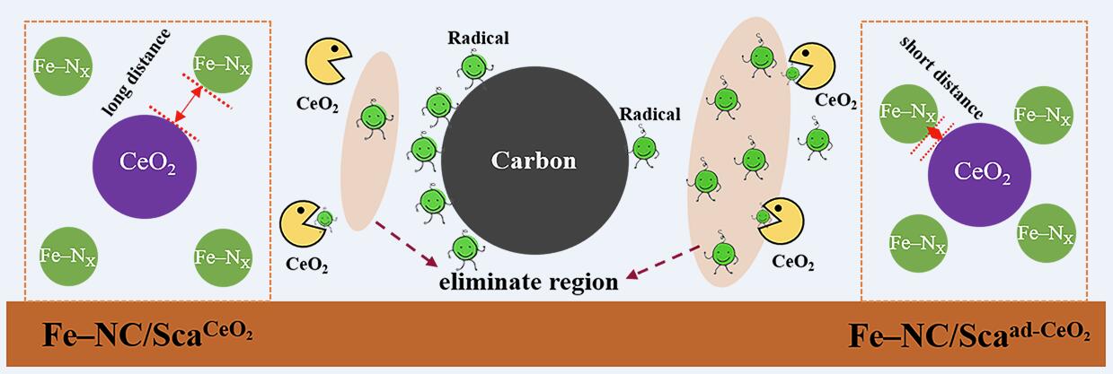 Fe-NC/Scaad-CoO2和Fe-NC/ScaCeO2自由基消除行为比较示意图