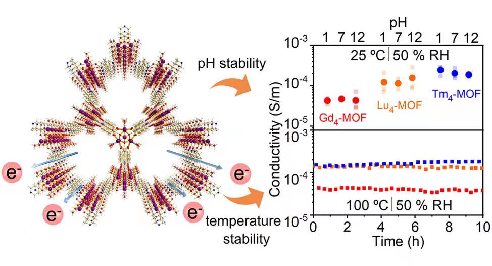 具有高电子传导性能的金属-有机框架(MOFs)材料被越来越多地应用于超级电容器、燃料电池、电催化剂和传感器等领域。然而,这些应用涉及的实际工作环境(包括电场强度、pH和温度等)通常是复杂、多变、严苛的。例如,在电催化过程中,通常需要强酸或强碱环境,而且随着反应的进行,催化剂表面的电场强度和温度会不断升高,这些都对导电MOFs材料的稳定性、高效性提出了挑战。