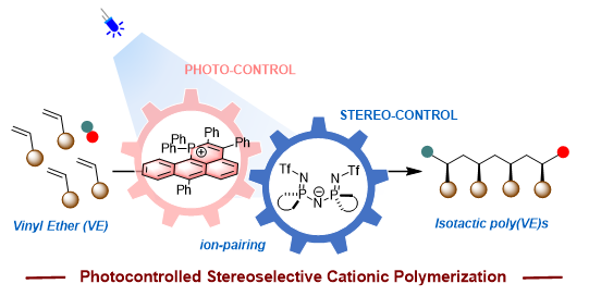光控聚合具有光的非侵入性调控和时空控制等优点,已发展为高分子材料精准构建的重要方法。光控聚合方法可实现高分子材料的组成、序列、拓扑结构的精准构建,并具有同时在时间和空间维度对聚合过程进行调控的能力,但很少能实现对聚合物的立构规整性进行调控。立体选择性聚合是实现烯基聚合物立构规整性调控的主要方法,但目前仅立体选择性光控自由基聚合有成功的例子报道,光控阳离子聚合的立体选择性调控却一直未能突破,亟待有效的策略和思路发展。