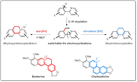 最近,我院张延东教授课题组在杂环合成新方法和生物碱全合成领域取得重要进展,相关成果以“Merging C–H Vinylation with Switchable 6π-Electrocyclizations for Divergent Heterocycle Synthesis”为题发表在《美国化学会杂志》(JACS)上在线发表(J. Am. Chem. Soc. 2020, 142, 15585-15594)。这是该课题组在黄连素药物研究领域的又一力作。