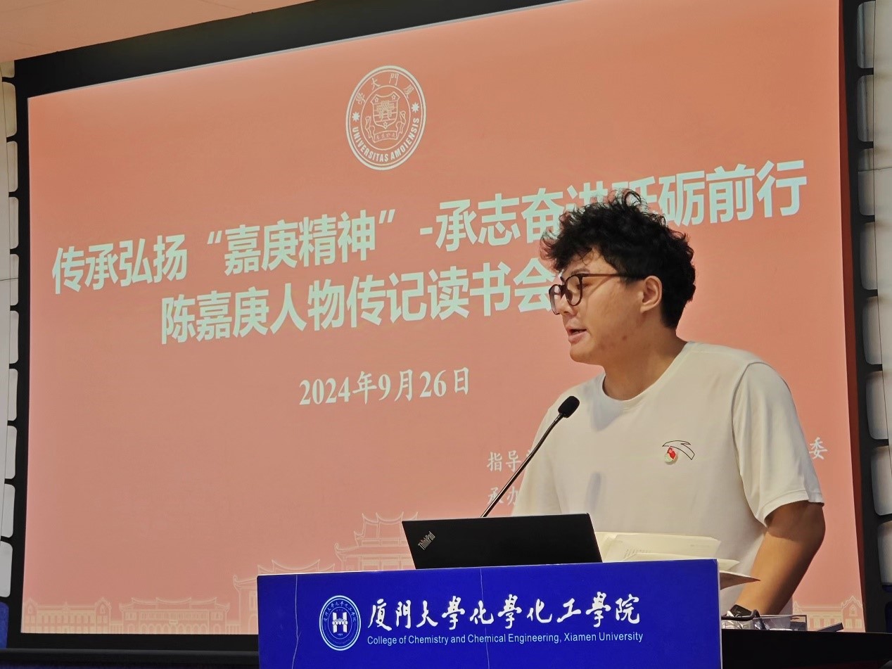 9月26日,化学化工学院硕士研究生2023级3班党支部在卢嘉锡楼202报告厅举办了一场以“传承弘扬嘉庚精神,承志奋进砥砺前行”为主题的陈嘉庚人物传记读书会。活动通过研读《陈嘉庚传》,引导青年学子学习和传承陈嘉庚先生的爱国精神、自强精神和无私奉献等精神。厦门大学基层党建工作联络员白锡能、化学化工学院党委副书记聂鑫和党支部全体学生参加了此次活动。