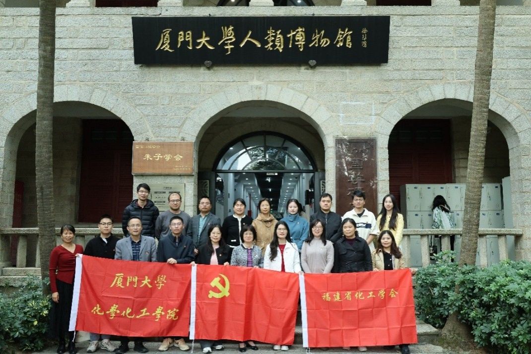 为深化院会党建协同联动,以高质量党建引领化工领域教育科研与行业发展深度融合,切实推动党员同志从校史中感悟初心使命,在思想淬炼中提升政治觉悟,进一步凝聚为党育人、为国育才与“服务行业、赋能产业”的合力,12月18日,厦门大学化学化工学院化学工程研究所教工党支部、工业催化与能源化工研究所教工党支部、生物化工研究所教工党支部与福建省化工学会党支部联合开展支部共建活动,组织党员同志走进厦门大学人类博物馆,参观学习“烽火弦歌,南方之强——厦门大学内迁长江办学历史档案”专题展览。厦门大学化学化工学院副院长张秋根教授,化学工程与生物工程系副主任、工业催化与能源化工研究所支部书记黄加乐教授,化学工程研究所支部书记郑艳梅教授、生物化工研究所沈亮副教授,及三个教工党支部与福建省化工学会党支部党员代表共同参加活动。