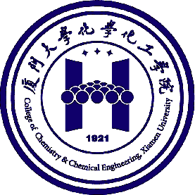 外圆圈内上方"厦门大学化学化工学院"为卢嘉锡先生亲笔题写的院名。下方是院名的英语全称。